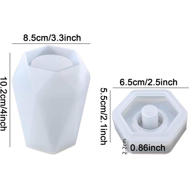 δοχείο αποθήκευσηςκαλουπιών χύτευσης με γεωμετρικό σχέδιο είναι μια πρακτική επιλογή για όσους επιθυμούν να δημιουργούν τα δικά τους αξεσουάρ από εποξειδική ρητίνη, γύψο ή κερί. Χάρη στο μοντέρνο εξαγωνικό σχήμα του, το τελικό προϊόν είναι κατάλληλο ως διανομέας σαπουνιού, κοσμηματοθήκη, διοργανωτής για μικρά αντικείμενα ή διακοσμητικό κομμάτι για το μπάνιο ή το γραφείο. Το καλούπι είναι κατασκευασμένο από υψηλής ποιότητας σιλικόνη, η οποία είναι εύκαμπτη, επαναχρησιμοποιήσιμη και ανθεκτική στην παραμόρφωση. Ο σχεδιασμός δύο τεμαχίων με κεντρική προεξοχή εξασφαλίζει ομαλά και λεπτομερή τοιχώματα του τελικού χυτού. Προορίζεται κυρίως για τους δημιουργούς χειροποίητων διακοσμήσεων, τους τεχνίτες και τους λάτρεις των έργων DIY που θέλουν να δημιουργήσουν τα δικά τους λειτουργικά αντικείμενα με μοναδικό σχεδιασμό. Χάρη στη λεία επιφάνεια, η αποδιαμόρφωση είναι πολύ απλή, εξοικονομώντας χρόνο και υλικό. Συνιστούμε τη χρήση του με χρωματιστή ρητίνη, μεταλλικά εφέ ή αποξηραμένα λουλούδια για ένα ακόμα πιο προσωπικό αποτέλεσμα