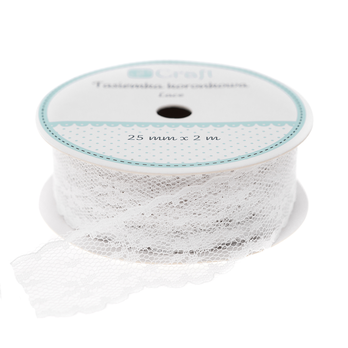 Introduction » Χόμπυ εργαλεία » Κορδέλες, γιρλάντες, οργάντζα » Κορδέλα από δαντέλα 25 mm x 2 m | άσπρο