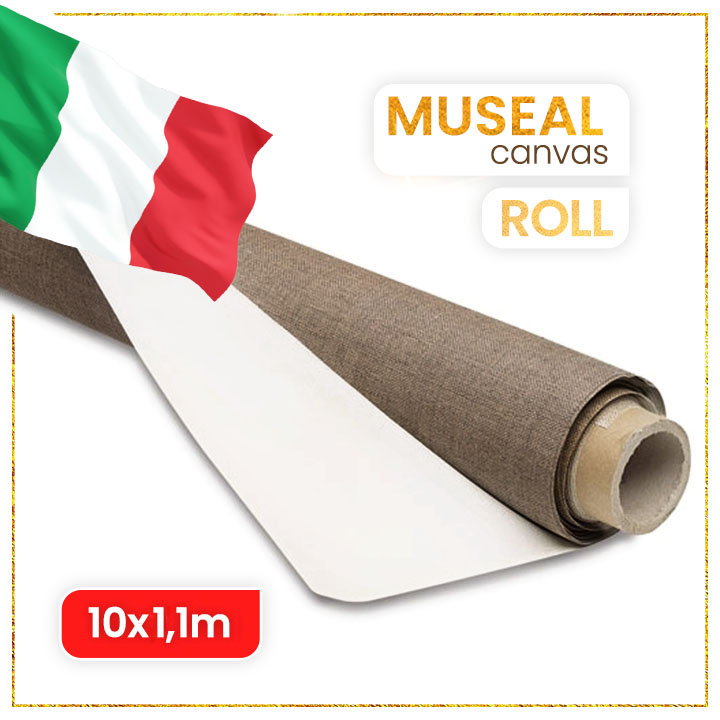 Ο λινός καμβάς εκτιμάται επίσης ιδιαίτερα λόγω των μοναδικών ιδιοτήτων του λινού. Το λινόείναι μια εξαιρετικά ισχυρή φυσική ίνα. Αντέχει πολύ καλά στις εκδορές και σε άλλες περιβαλλοντικές επιδράσεις. Αν θέλετε να επιτύχετε διαχρονικότητα στο έργο σας και να δώσετε στις προσπάθειές σας την ίδια βάση με τους παλιούς δασκάλους, επιλέξτε το Museal - ιταλικό λινό.